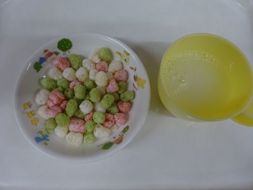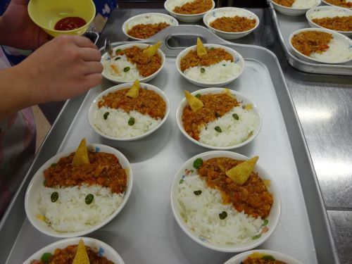 給食の様子を見に行くと、担任の先生が「いくつお星さまが隠れているのか探しながらたべましょうね」ととても盛り上がっていました!
