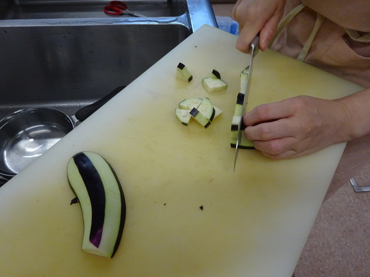 子どもたちから届いた茄子は給食室で調理をしてお味噌汁に入れました!