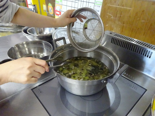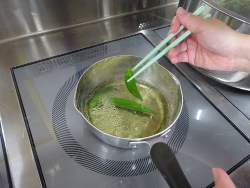 切る作業はみんな真剣です。固い野菜と柔らかい野菜の切り方も、しっかりDVDを観て学んでくれていたのが分かります。おかげで、ケガなく野菜を切ることができました。