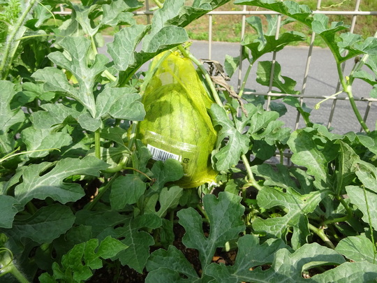 らいおん組の子どもたちが苗を植える時から楽しみにしていたスイカを収穫しました。外遊びの度にスイカの成長を見守ってきた子どもたち。大切にネットをかぶせて収穫できる日を待っていました。