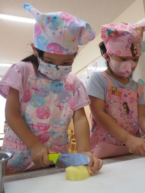 今日は、らいおん組でさつまいもを使用してクッキングを行いました。