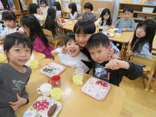 先日の発表会でも立派な姿を見せてくれました。そんな子どもたちとおやつの時間にデザートバイキングをしてクリスマスを楽しく過ごしました☺