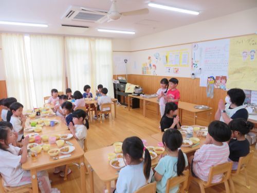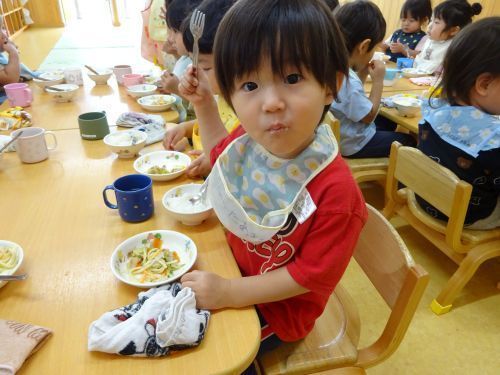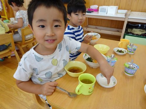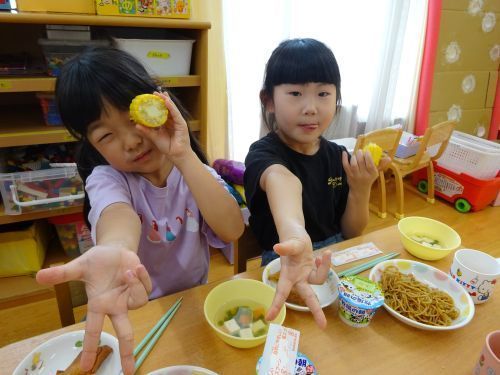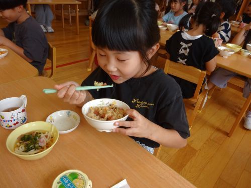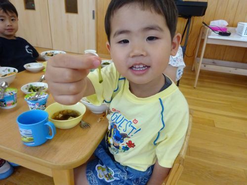 「苦手だから小さいのがいい」と言う子も意欲的に食べて、みんなで夏の味覚を楽しむことができました!