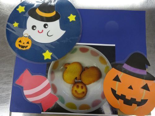 今年のハロウィンメニューは、オリエンタルピラフ、鶏肉のバーベキューソース焼き、かぼちゃのサラダ、ポタージュ、パンプキンプリンでした。