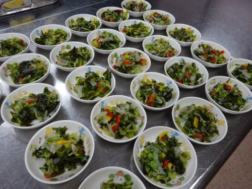 今日の給食の『きゅうりとわかめのサラダ』に使用しました。