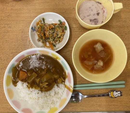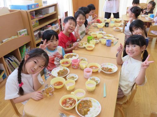 「おいしい!」「僕が切った人参だよ!」と笑顔いっぱいの給食になりました。手作りしたカレーを一口食べて、「スマイル保育園に来れてよかったぁ」と嬉しい感想も聞くことができて、最高のカレークッキングになりました☺
