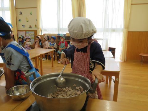 職員が「おいしいですか?」と聞くとにこにこと答えてくれる子どもたちの笑顔が達成感に溢れていたように感じます!残さず食べてくれたので給食室の職員もホッと一安心。
