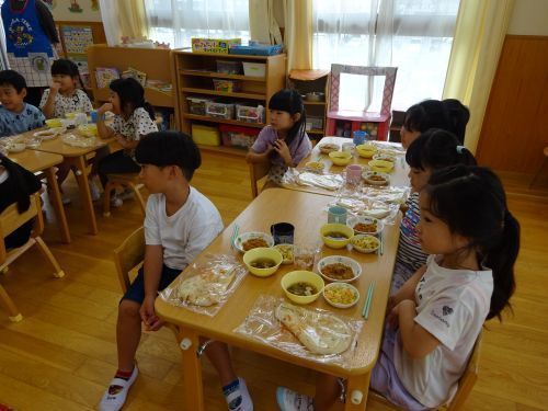 お待ちかねのカレーが出来上がりました!クラス中にカレーのいい香りが広がります♪